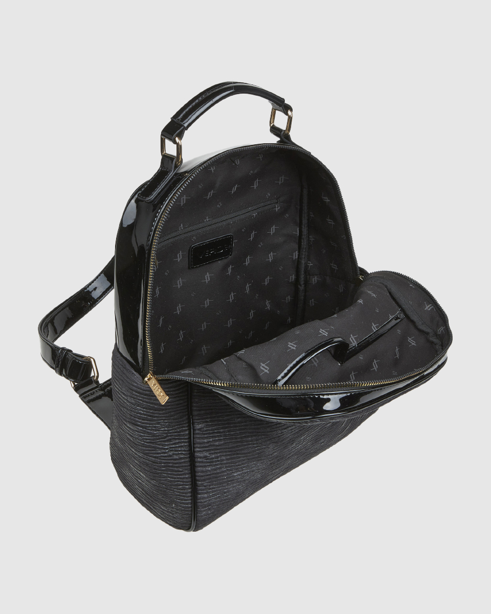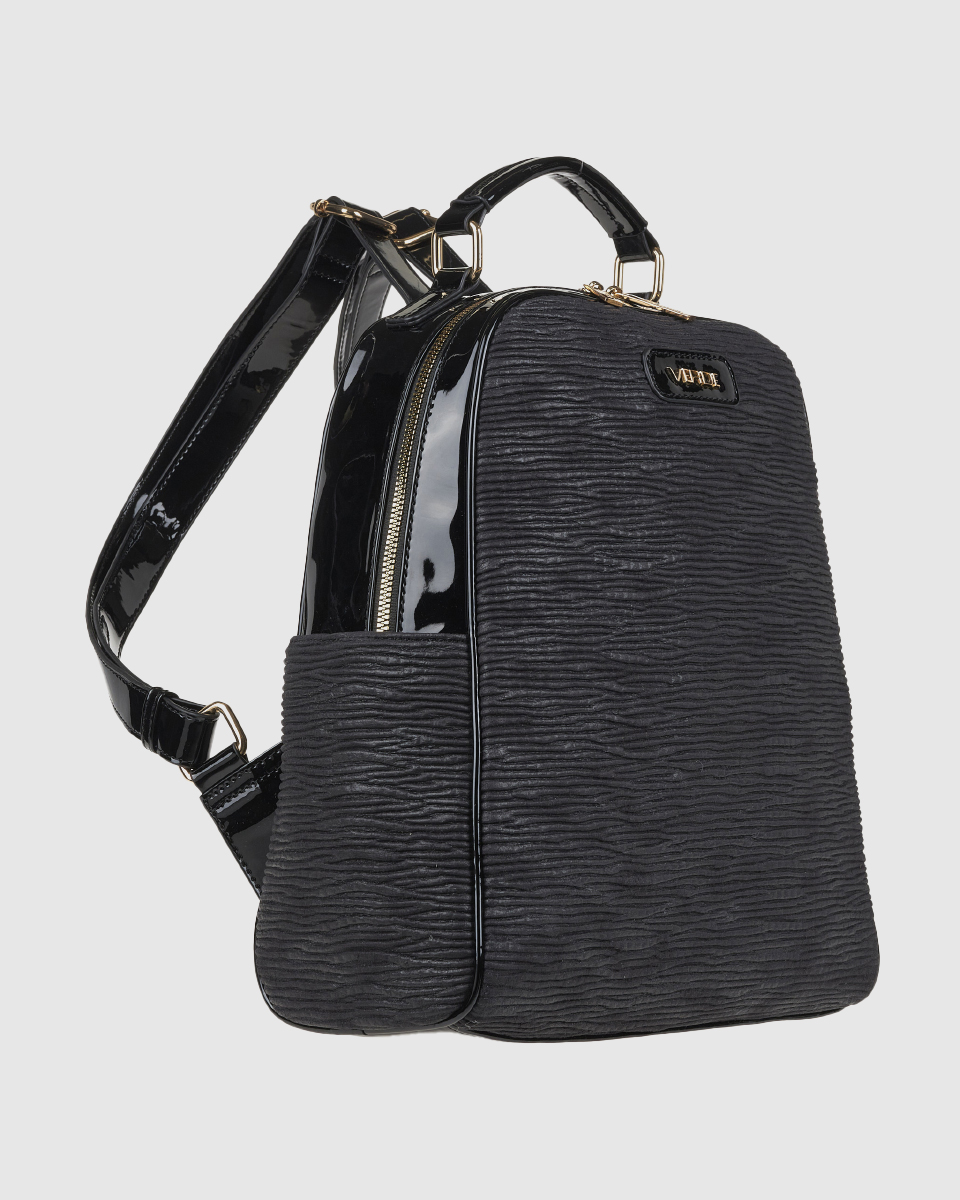 Women’s Verde backpack with a basic zipper closure and a spacious outer zippered front compartment, various internal compartments for a mobile phone case and an inside zippered pocket.
