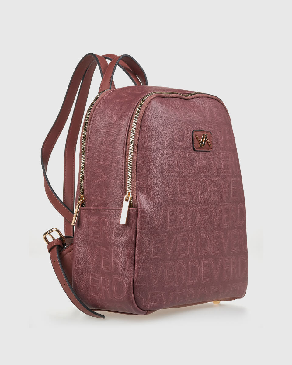 Verde backpack with a basic position that closes with a metal clasp and has an inner pocket with zipper and a pocket on the back of the bag.