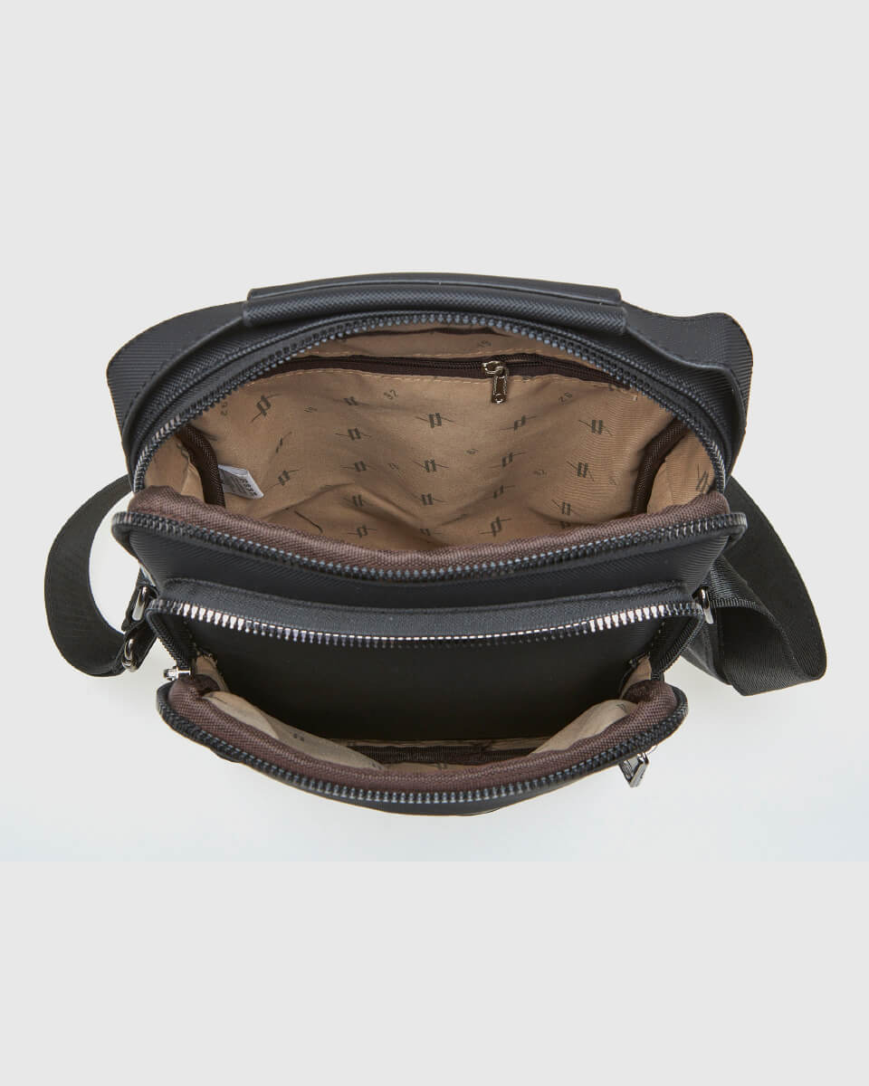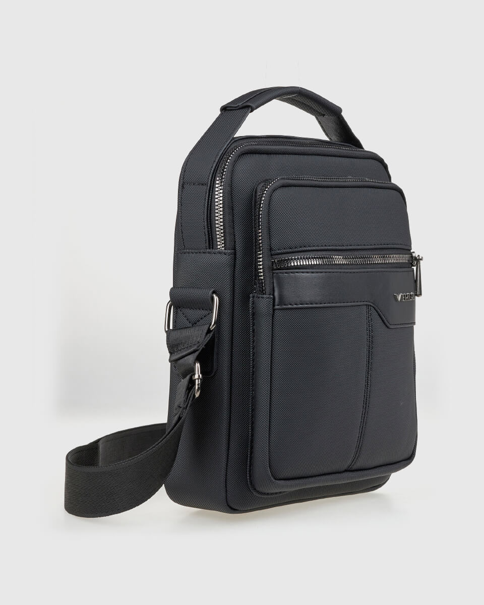 Backpack with two basic positions and a front case that closes with a zipper also has three internal pockets, one with a zipper.
