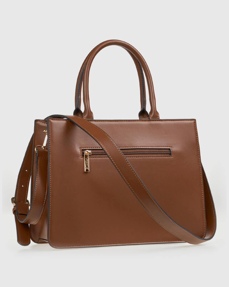 Women’s shoulder bag of the company Verde with a basic position that closes with a zipper and internal mobile case on the outside has a rear seat with a zipper.
