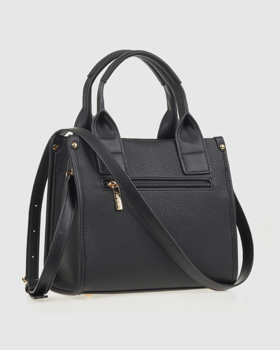Εκτυπωμένο συνθετικό δέρμα. Μεταλλικά μέρη gunmetal χρώματος. Υφασμάτινος ιμάντας αυξομειούμενος. Φόδρα, 100% βαμβακερή. Κλείσιμο με φερμουάρ ΥΚΚ. Δερμάτινες λεπτομέρειες.