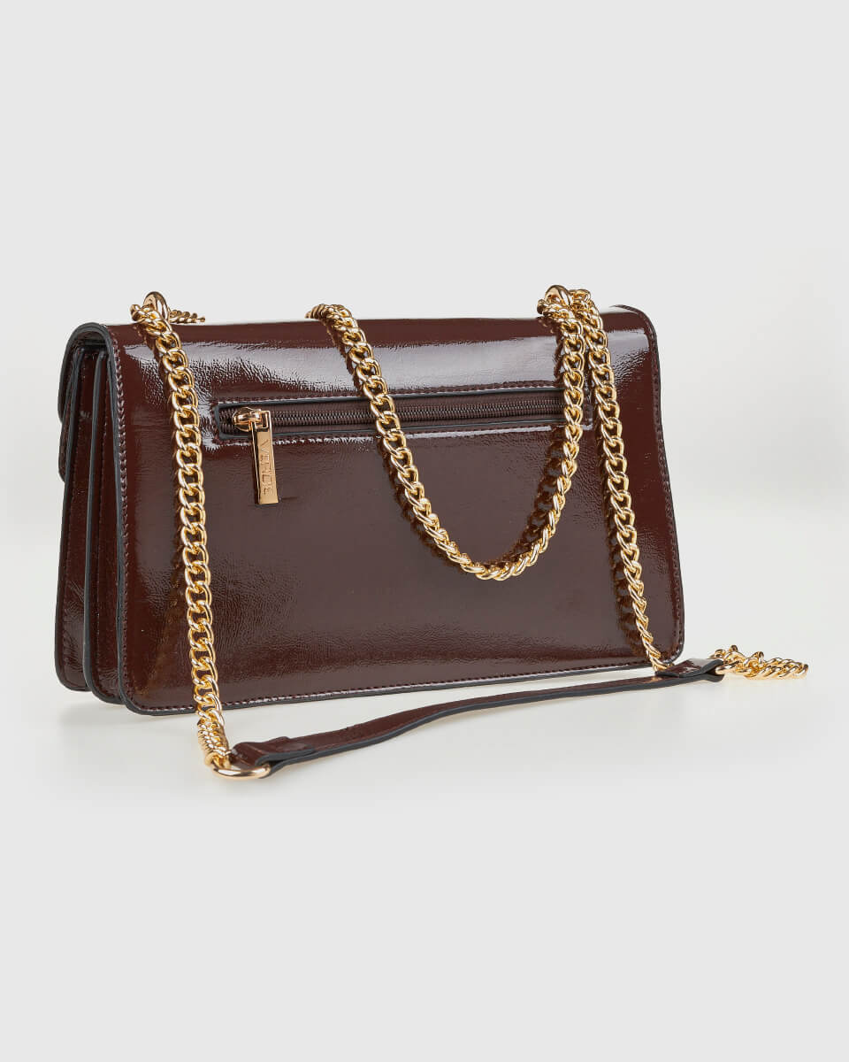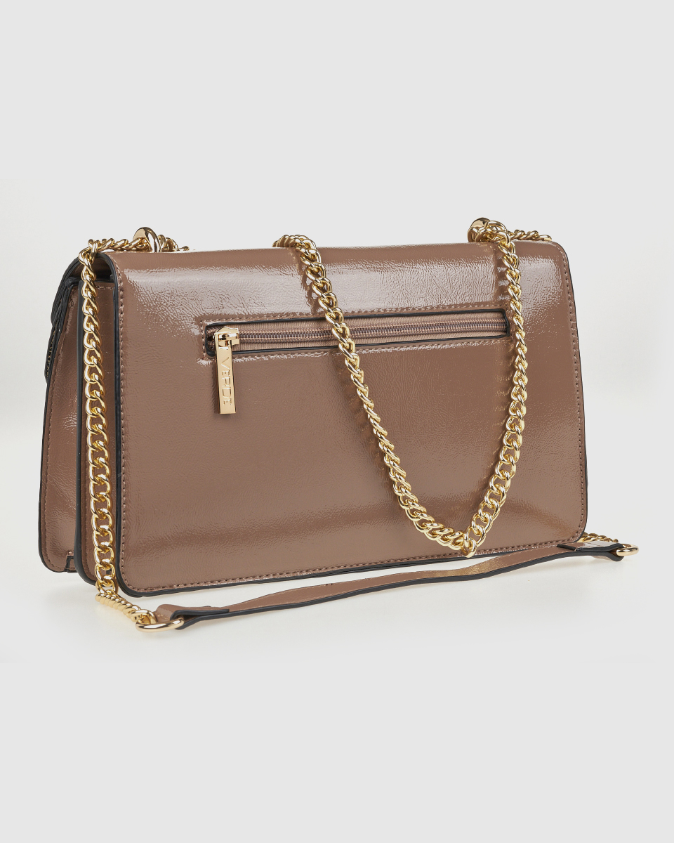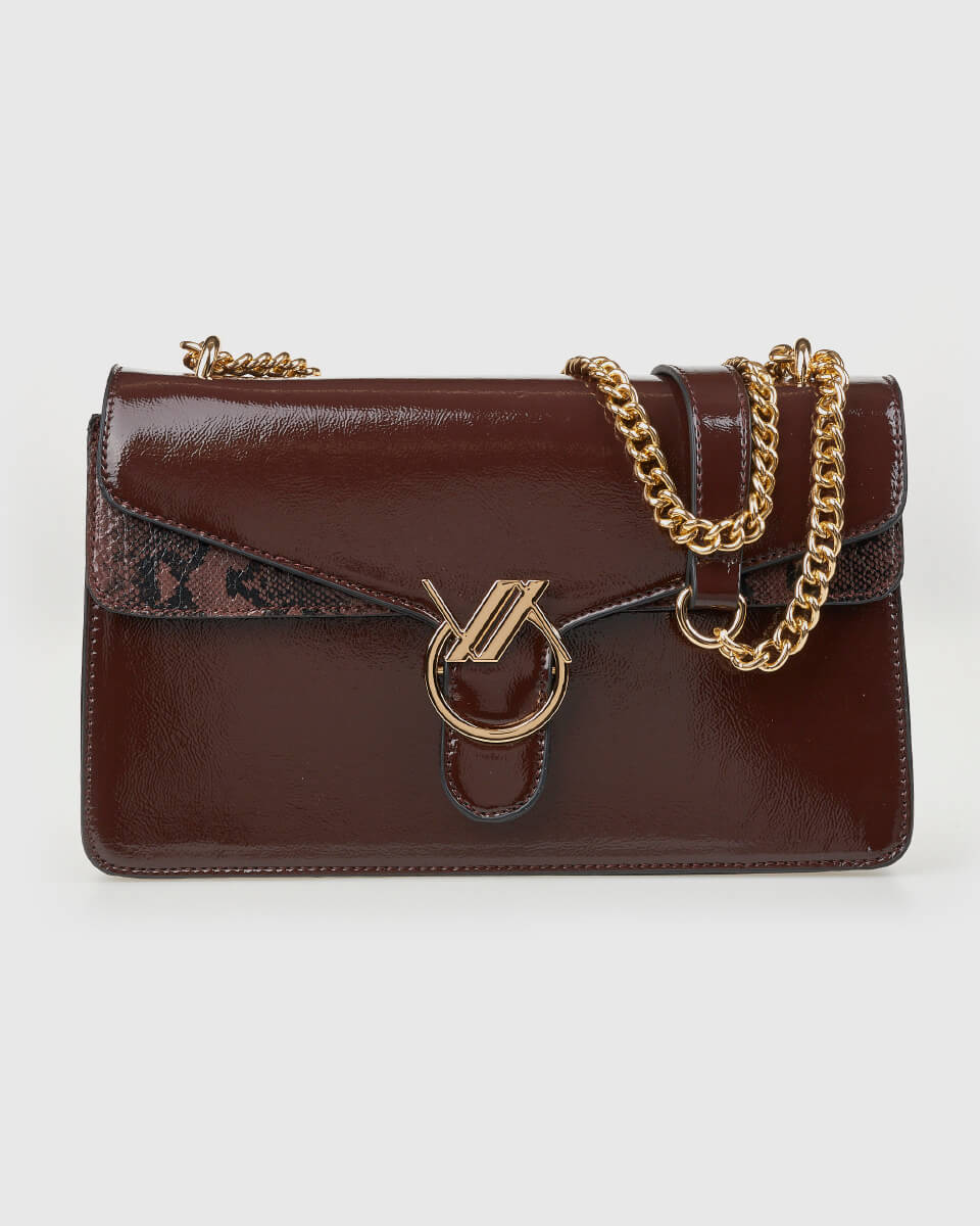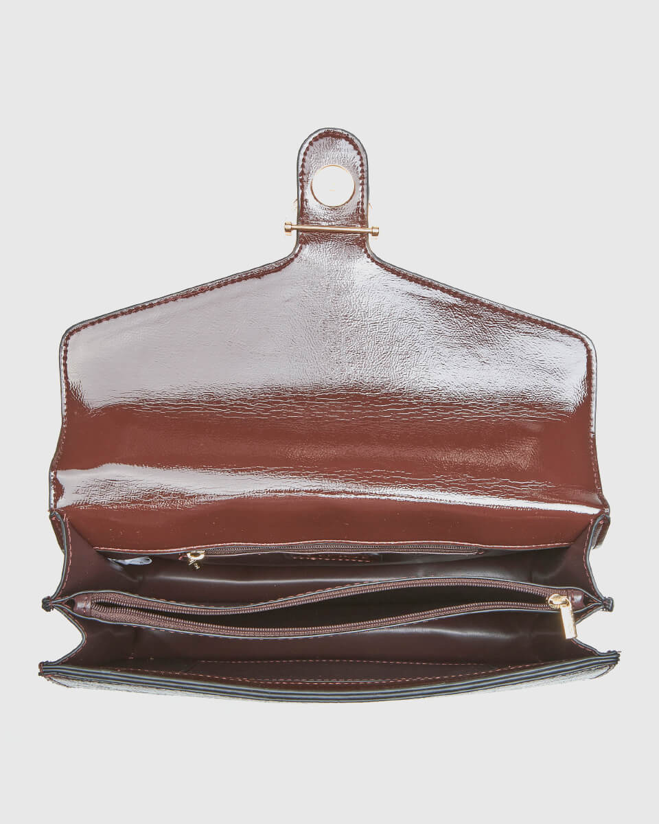 Γυναικείο τσαντάκι χιαστί Verde με μία κύρια θέση που κλείνει με περιστρεφόμενο μεταλλικό κούμπωμα δύο εσωτερικές βοηθητικές θήκες αποσπώμενο λουράκι στήριξης