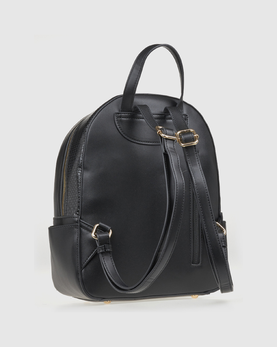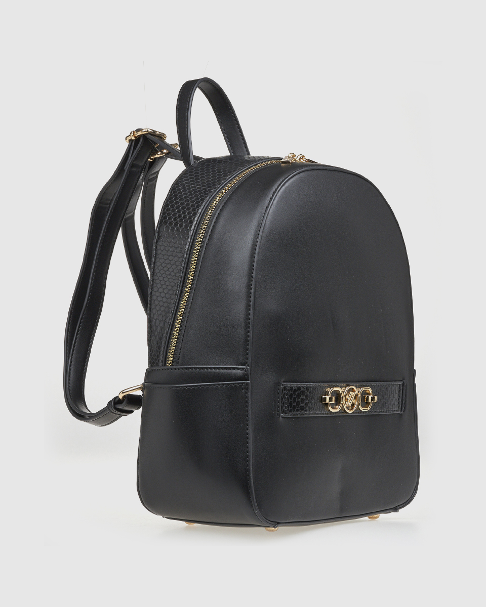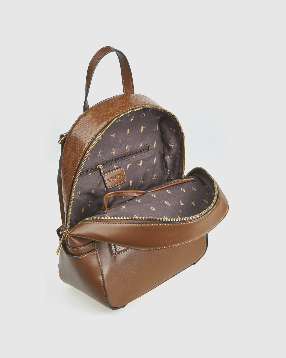 Εκτυπωμένο συνθετικό δέρμα. Εξωτερική τσέπη με φερμουάρ. Λεπτομέρειες από γνήσιο δέρμα. Μεταλλικά μέρη gunmetal χρώματος. Φόδρα, 100% βαμβακερή Ιμάντες πλάτης με επένδυση από γνήσιο δέρμα. Κλείσιμο με ΥΚΚ φερμουάρ Δύο εσωτερικές τσέπες και θήκη για κλειδιά